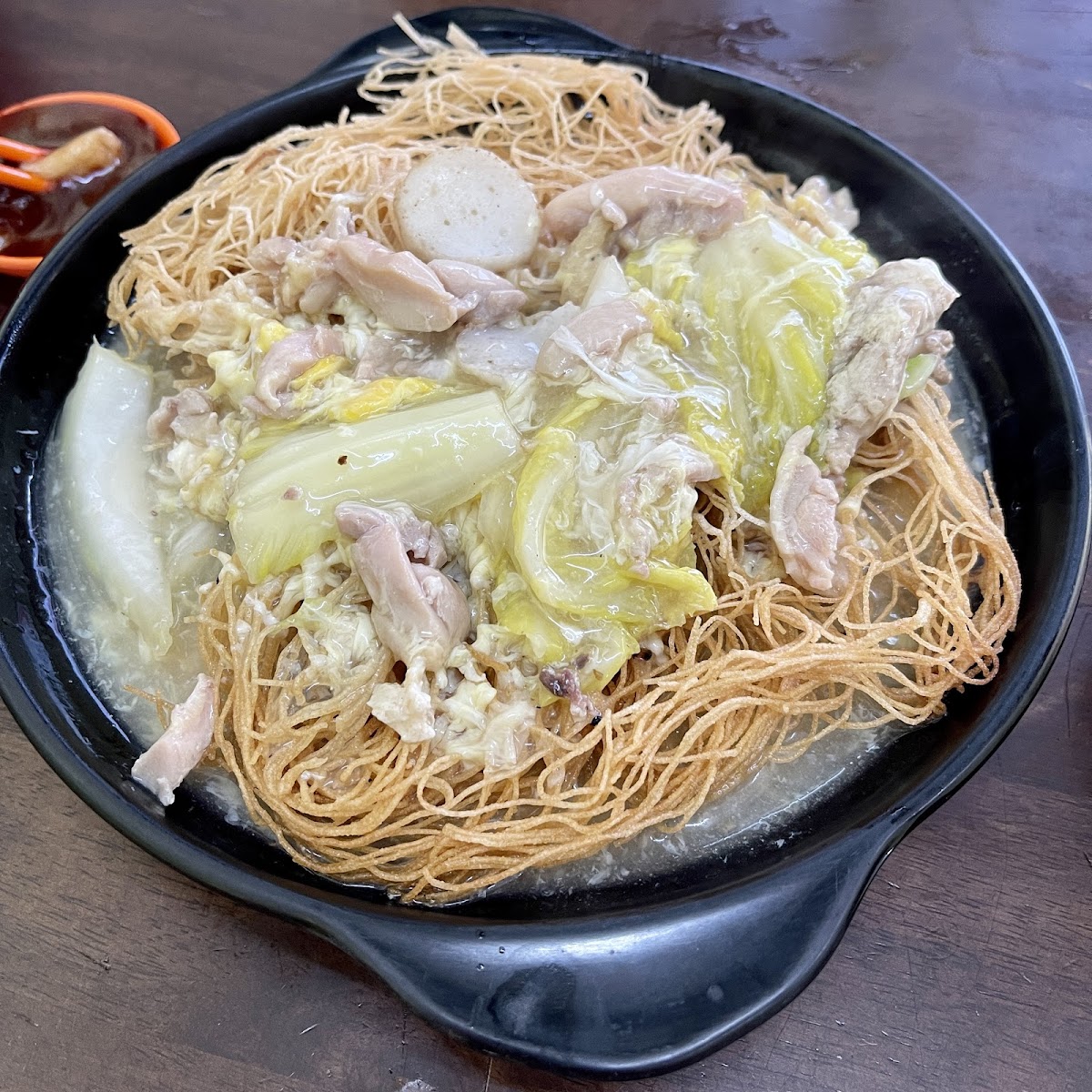 Service is fine. Fill in your order at the paper and submit. Pick your own sides for your noodle. Sg lembing noodle is nice and no thirsty after eating. Good for breakfast. No pork served too.